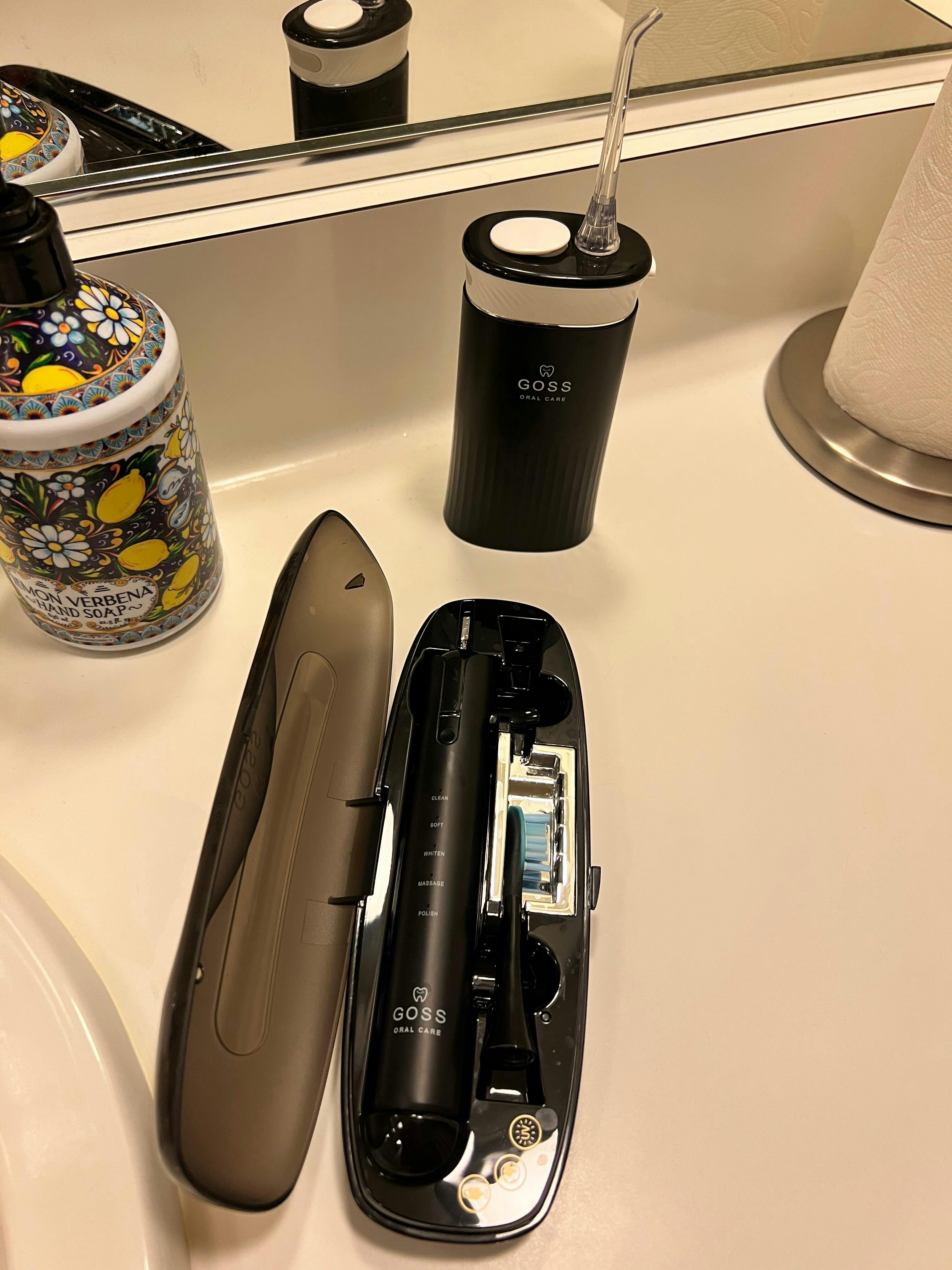 The UV case keeps the brush head sanitized between uses.